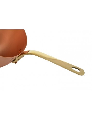 Poelon en cuivre rouge, monture bronze. L’ustensile idéal pour la préparation du sabayon : sa forme particulière, demi-sphérique, aide à incorporer de l’air et évite les débordements lors de la préparation du sabayon. Le cuivre est un excellent conducteur de chaleur qui autorise une cuisson rapide et homogène.